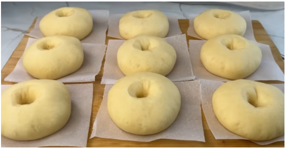 Kada je tijesto spremno, podijelite ga na 12 jednakih dijelova. Najlakše je oblikovati tijesto u valjak pa ga narezati na jednake komade. Svaki komad oblikujte u kuglu, a zatim je lagano spljoštite. Prstom ili drškom kuhače napravite otvor u sredini da biste dobili klasičan oblik krafne. Krafne stavite na pleh obložen papirom za pečenje, ostavljajući razmak između svake kako bi se ravnomjerno pekle. Pećnicu zagrijte na 180°C i pecite krafne 20 do 25 minuta, ovisno o jačini vaše pećnice. Krafne su gotove kada dobiju zlatno-smeđu boju i postanu lagane na dodir. Ako niste sigurni, možete ih testirati čačkalicom – umetnite je u jednu krafnu i ako izađe čista, krafne su spremne. Ostavite ih nekoliko minuta da se ohlade prije posluživanja.