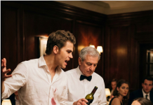 Sin ponizio konobara u restoranu pred devojkom