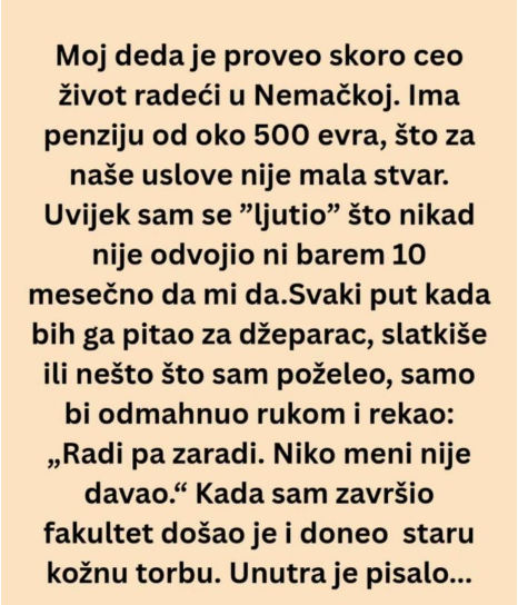 Jedan mladić je podijelio na društvenim mrežama priču o svom djedu i njegovoj mudrosti i kako je dugo godina mislio da je stariji čovjek škrt a ispostavilo se da je samo mudar.