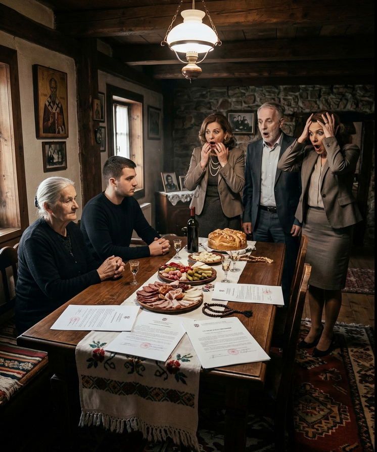 Tri dana nakon toga, tri luksuzna automobila su se zaustavila pred njenom kućom. Marko je prvi izleteo napolje, besno udarajući u vrata. Petar je bio već na telefonu sa advokatima, želeći da imovinu zamrzne. Vesna je bila u panici, spremna da napravi skandal. Ušli su u kuću i očekivali su da nađu majku, onu staru ženu koja nije bila u stanju da razmišlja o svojim postupcima. Ali, kada su došli u trpezariju, prizor koji ih je dočekao nije bio ni nalik onome što su očekivali. Ruža je sedela uspravno, u svojoj najlepšoj haljini, okružena domaćim jelima. Ispod njenih ruku, mladić je mirno sedeo. Njegovo ime je bilo Nikola, volonter iz crkve.