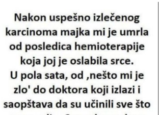Nakon uspješno izliječenog karcinoma majka mi je umrla od posljedica hemoterapije