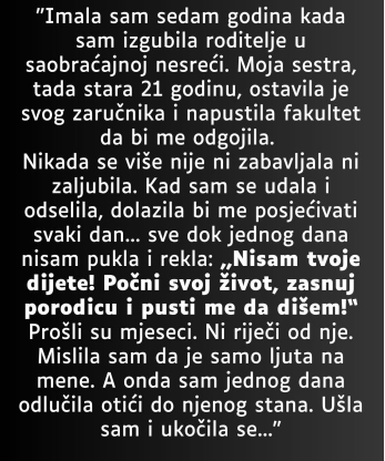 A onda se dogodio događaj koji je promijenio tijek priče. Iscrpljena stalnim nadzorom, pritiskom koji nije mogla razumjeti, izgovorila je rečenicu koja je zvučala kao grmljavina: Nisam tvoje potomstvo! Započni vlastiti život, stvori obitelj i pusti me da živim! Riječi su bile oštre, ali izgovorene u šali i izravno su pogodile tlo gdje je sestrino srce bilo posađeno godinama. Od tog dana, tišina. Dani su postali tjedni, a zatim mjeseci. Nitko nije slao poruke, zvao niti posjećivao. Mlađa je pretpostavila da je starija jednostavno ozlijeđena, da joj treba vremena. Unatoč grižnji savjesti, nedostajalo joj je znanja da započne.
