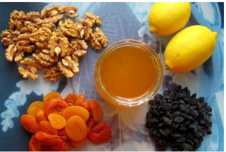 Posjedovali ste: 200 grama oraha 200 g badema 200 g grožđa 200 grama suhih marelica 100 grožđa 1 limun s korom, a po mogućnosti organski proizvodi. 300 g domaćeg meda. Očistite sve suhe sastojke, a zatim ih dobro osušite. Limune narežite na tanke kriške (ili ih naribajte u blenderu, ali bez koštica). Također možete koristiti suho voće i orašaste plodove kako biste olakšali učinkovitije djelovanje meda.