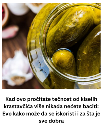 Sljedeći put kada konzumirate staklenku kiselih krastavaca, sjetite se da je H2O povezan s njima jednako važan kao i sami kiseli krastavci. Ovo je jednostavna, prirodna metoda poboljšanja vašeg zdravlja bez uništavanja ičega. Ukiseljena voda prikladna je za razne namjene, uključujući oporavak od vježbanja ili čak kao dio dnevne rutine, uz svježe povrće ili kao dodatak obroku. Savjet stručnjaka je jednostavan: nemojte bacati ovu tekućinu, jer njezin potencijal uopće nije mali.
