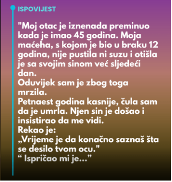 Još jedno nevjerojatno otkriće dogodilo se putem nasljedstva. U oporuci je maćeha djevojci dala dio imanja, kao da je htjela ovjeriti ono što nije mogla reći: da se smatra mladom djevojkom. Godinama je tajila romansu koju nije znala iskazati, a koja je na kraju izašla na vidjelo. Djevojčica je bila šokirana – sve godine bijesa i tuge odjednom su se srušile pod teretom istine. Shvatila je da je ono što je smatrala ravnodušnošću zapravo tiha kapitulacija. Kako napominje Klix.ba, ove priče pokazuju složenost ljudskih odnosa i učestalost s kojom su naše percepcije često pogrešne.