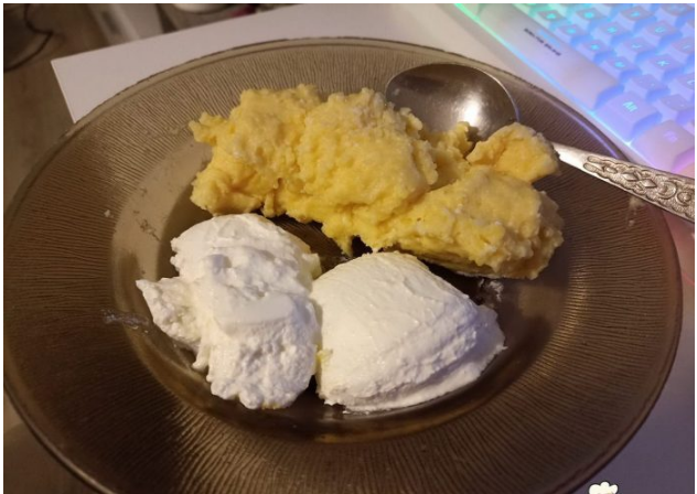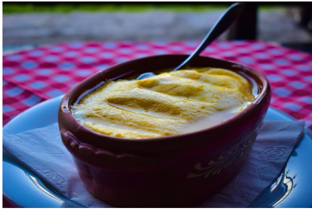 Nakon toga se dodaje vrhnje ili sir, a zatim sol i sve se miješa dok se ne sjedini. Kada tekućina ponovno zavrije, temperatura se smanjuje i kukuruzno brašno se dodaje u malim koracima. Važno je ulijevati ga u malim količinama i neprestano miješati kako bi se izbjegle velike grudice. Smjesa se zatim kuha otprilike deset minuta, dok ne postane gusta, podatna i ne počne se odvajati od dna posude. Po želji, na kraju se može dodati mala količina meda, što će pružiti blagu slatkoću i ublažiti čvrstoću masnoće, bez promjene njezine prirode.