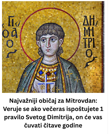 Mitrovdan ili Sveti Dimitrije je jedan od važnijih crkvenih praznika u pravoslavnoj zajednici a za njega se kao i za većinu drugih vežu neka vjerovanja i narodni običaji koje treba ispoštovati.