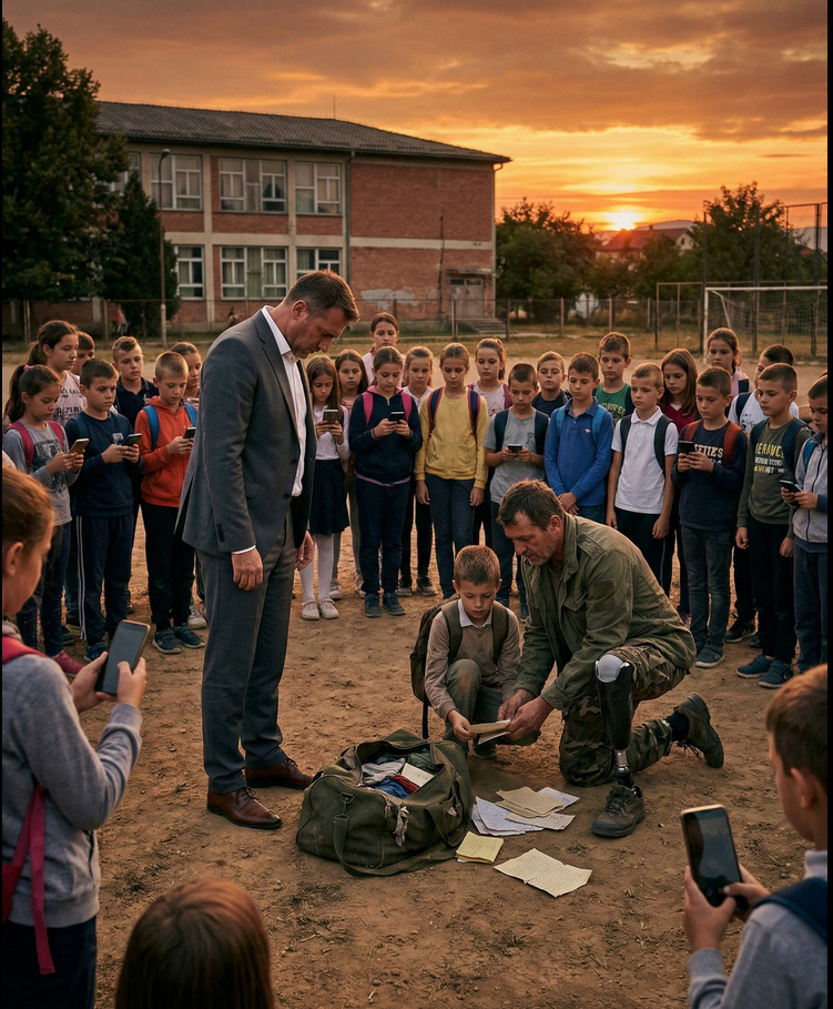 Tišina je bila teža od bilo kakvog nasilja. Jovan je polako prišao i podigao fotografiju, stiskajući je u ruci. Polako je okrenuo leđa Marku, ne govoreći ništa, i otišao ka školskoj zgradi. Njegov hod bio je miran, ali svaki njegov korak odjekivao je u dvorištu, a Marko je ostao da gleda u to što je učinio, shvatajući da je izgubio sve – svoju moć, svoje prijatelje, i svoju sposobnost da ponizi nekog drugog.Jovan nije imao ništa osim svojih uspomena, ali on ih je sačuvao. Na kraju, torba koju su svi smatrali bezvrednom postala je simbol njegova dostojanstva. U tom trenutku, Marko je shvatio da mu ništa od njegovog bogatstva nije moglo doneti ponos.