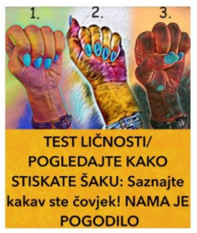 Danas za vas imamo jedan zabavan test koji će vam pomoći da se malo opustite i da saznate neke stvari o sebi koje možda do sada niste znali. Radi se o načinu na koji stiskate svoju šaku.