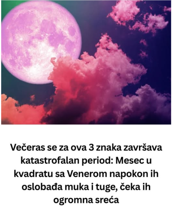 Za sve tri ove znakove, Mesec u kvadratu sa Venerom donosi oslobađanje od onog što ih je zadržavalo u prošlim tugama i nesrećama. Ovo je savršen trenutak za početak novog poglavlja u njihovim životima. Ako ste među ovim znakovima, predstoji vam vreme ispunjeno ljubavlju, srećom i unutrašnjim mirom. Vaša snaga, strpljenje i vera u sebe biće nagrađeni, a ljubav koja dolazi biće dublja i iskrenija nego ikada.