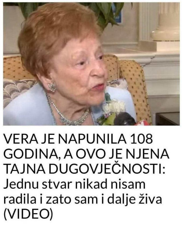 Ljudski vijek se stalno produžava međutim rijetki su oni koji dožive stotu godinu života. Vera je doživjela 108 a evo šta je smatrala glavnim za svoju dugovječnost.